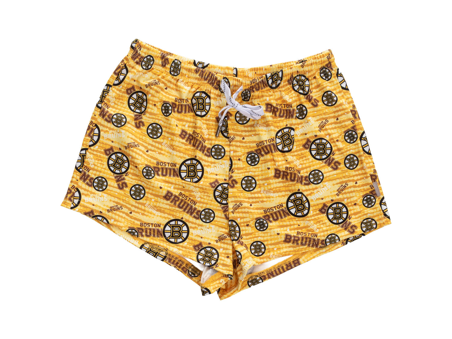 Dream of Boston Bruins victories while wearing our new NHL licensed Boston Bruins Lounge shorts.  Featuring a scatter print of Boston Bruins team name and iconic Bruins logos, our ultra soft, relaxed fit shorts will be your favourite way to relax while watching a game at home or just lounging this season!