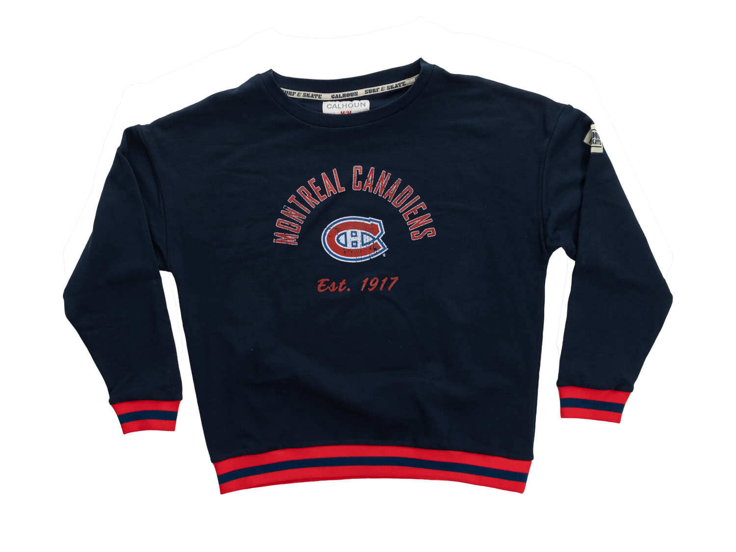 Freshen up your Montreal Canadiens fan gear with our new NHL Ladies' Vintage Stripe Montreal Canadiens Crewneck fleece. Featuring striped ribbing in Montreal Canadiens Iconic team colours and a distress screen print, our new crewneck fleece will be the perfect addition to your gameday look and will be a new favourite all year long.