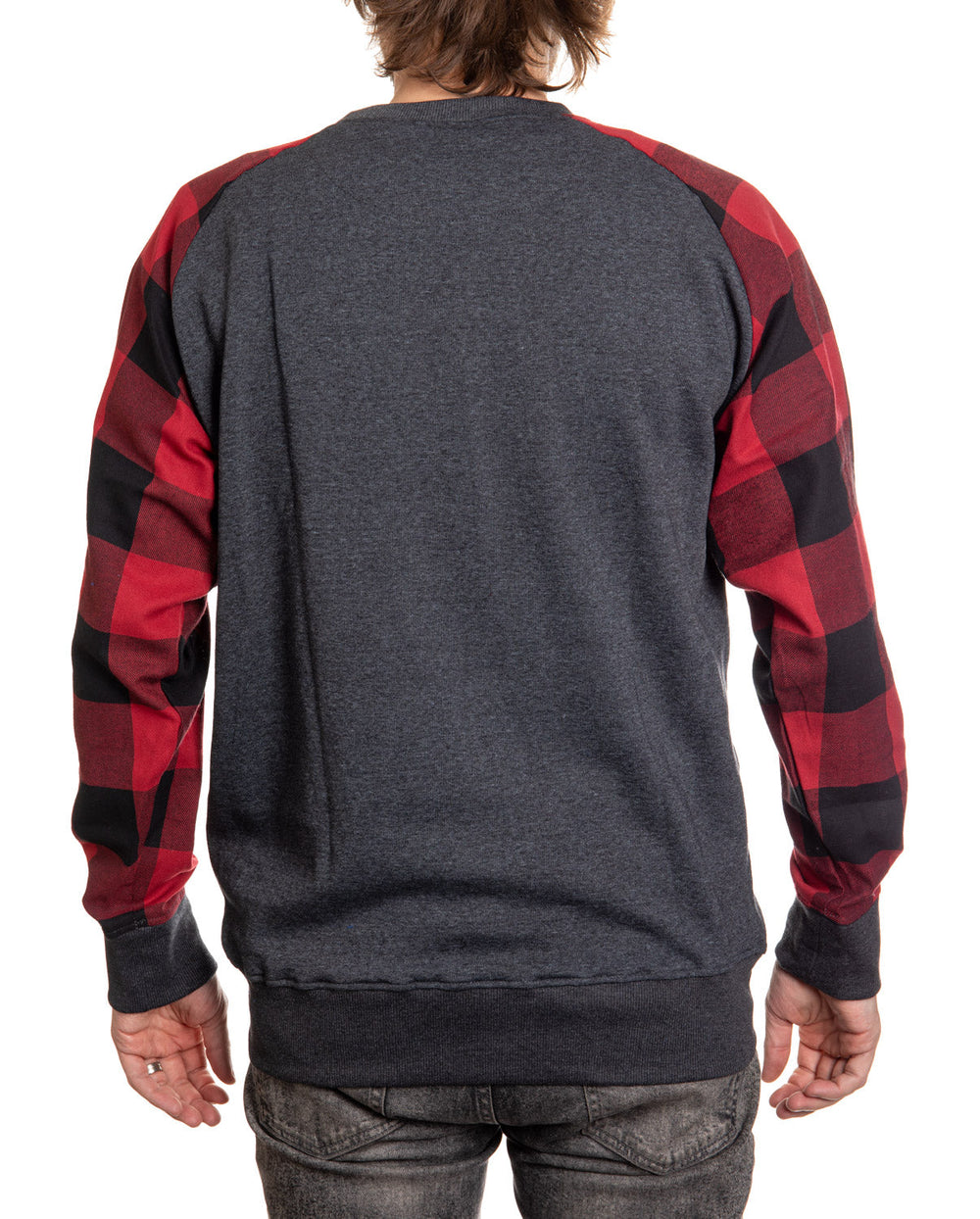 Standout from the Ugly Christmas Sweater crowd at your office party this season by wearing your favourite team instead.   Our licensed NHL Chicago Blackhawks Buffalo Plaid sweatshirt features flannel plaid sleeves in Blackhawks' red and an official Blackhawks' frayed logo patch on the front of the charcoal grey fleece body.