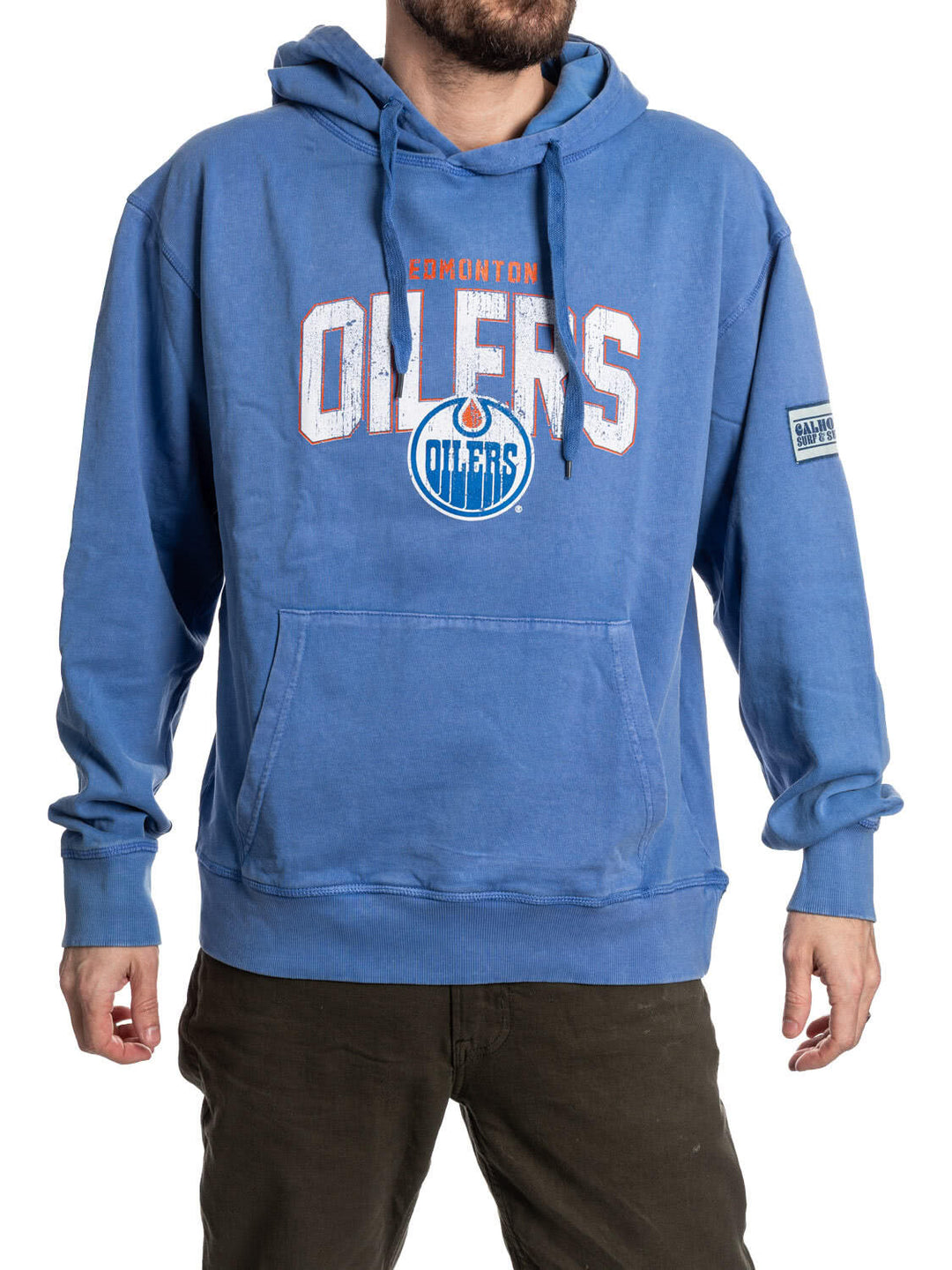 Official NHL licensed Edmonton Oilers Unisex Blue Acid Wash Hoodie