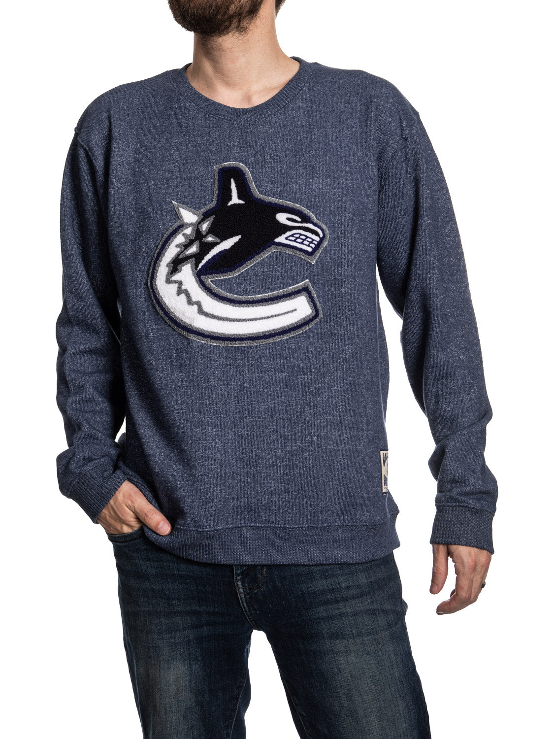 Step into the arena or your local hangout spot with confidence. This Vancouver Canucks NHL Cabin Crew Neck Sweater with chenille logo brings together your love for classic style and die-hard hockey passion. It's more than just a sweater—it's a statement of where your loyalties lie. Whether you're watching a face-off or catching up with friends, this is your go-to for genuine Canucks pride and unmatched comfort.