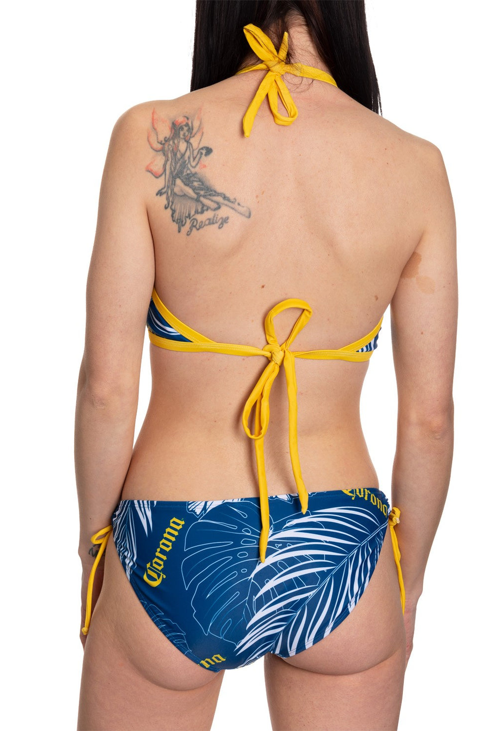 Freshen up your beach style with our new Corona Palm Halter Bikini! Stand out in the crowd with our Corona yellow straps and palm leaf graphics, complete with the official Corona Logo.